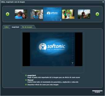 Una función interesante de Muvee Reveal X es magicSpot, que permite elegir el punto más importante de una imagen para añadir un efecto de zoom automático.